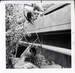 Navajo worker placing pipe on side of bridge during the Watchman housing utility project. ; ZION Museum and Archives Image 006.04.13-17of17 ; ZION 15933