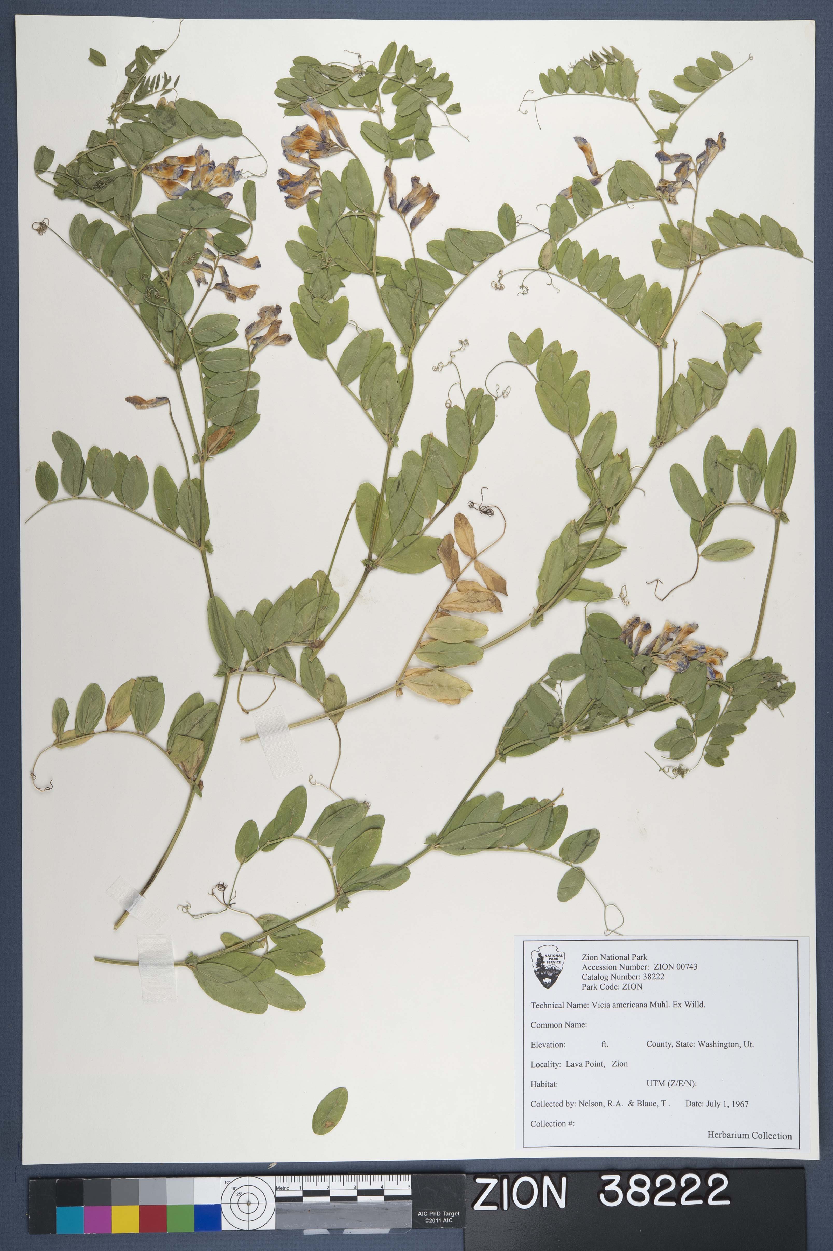 Vicia americana, American vetch --American deervetch --american purple vetch --vesce d'Amérique. Collected by Ruth A. Nelson, Tom Blaue, 07-01-1967. Catalogued by Margaret Malm, 2008.