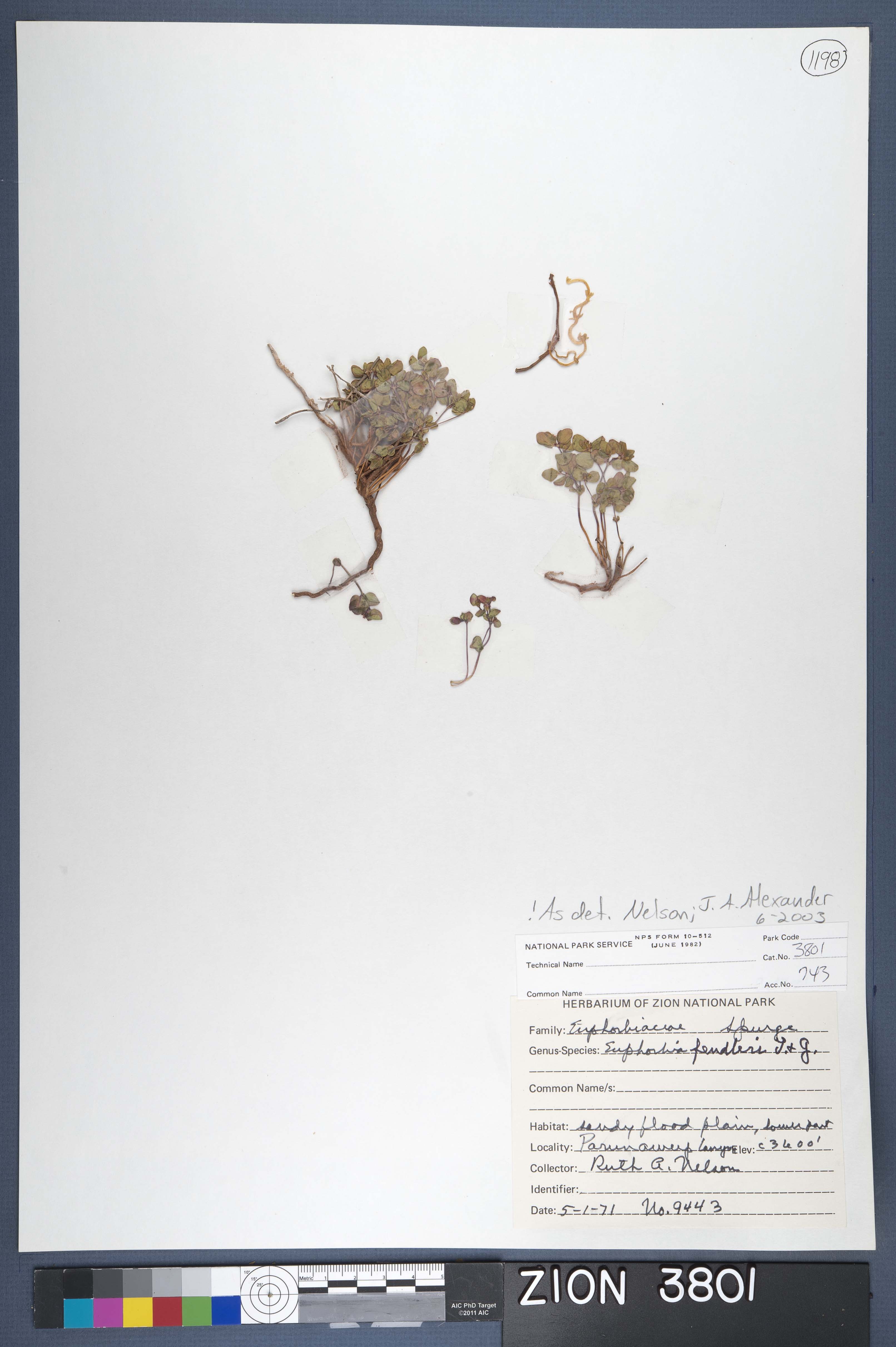 Euphorbia fendleri, Fendler carpetweed. Collected by Ruth A. Nelson, 05-01-1971. Catalogued by Margaret Malm, 1988.