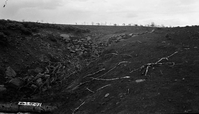Detention dams, Potato Hollow, constructed 1950, have completely filled with sediment; water table raised, continued grazing hinders permanent establishment of grasses. ; ZION Museum and Archives Image ZION 9363 ; ZION 9363