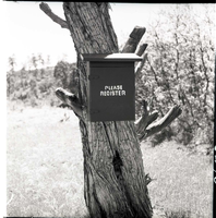 Registration box near cable works on Cable Mountain. ; ZION Museum and Archives Image 005_04_003 ; ZION 14693