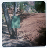 Dirt road leading up to the Zion Lodge footbridge during emplacement. ; ZION Museum and Archives Image 005.06.05-20of22 ; ZION 15933