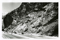 BW Photo of rock slide near echo rock - 35MM. ; ZION Museum and Archives Image 107_06_05012 ; ZION 15933