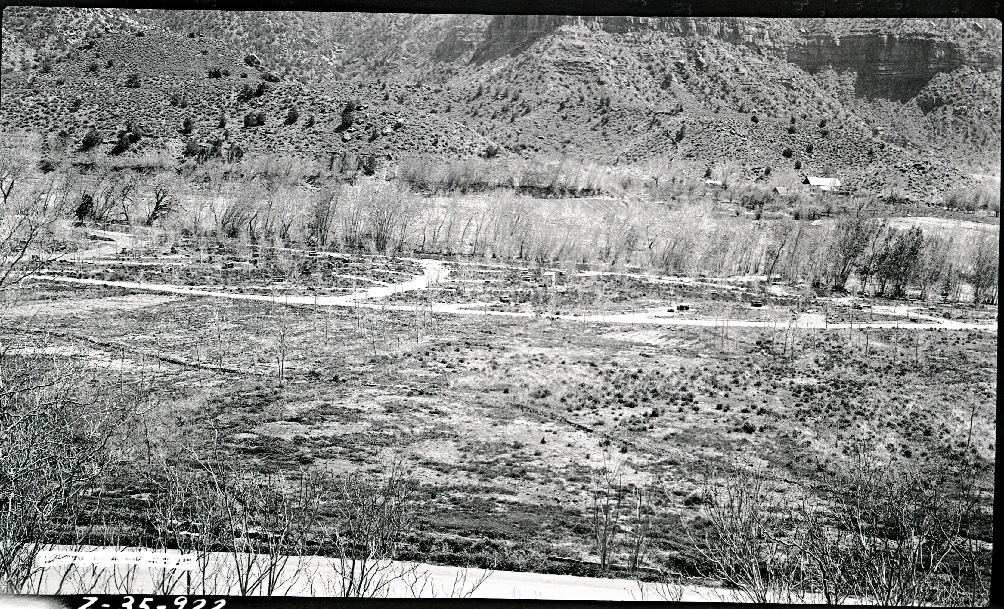 Amphitheater site at South Entrance campground before excavation. ; ZION Museum and Archives Image 003_01051 ; ZION 7966