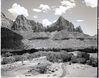 Bridge Mountain from the proposed site for new Mission 66 Visitor Center and Museum, view west near the mouth of Oak Creek Canyon. ; ZION Museum and Archives Image 004_01004 ; ZION 7746