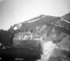 BW photos of rock slides in Kolob Canyons - 110mm. Trackhoe clearing debris. ; ZION Museum and Archives Image 107_06_21031 ; ZION 15933