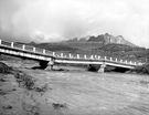 High water at bridge near Watchman residence area. This was called the Great Flood of September that claimed 5 lives in the Narrows. ; ZION Museum and Archives Image ZION 8529 ; ZION 8529