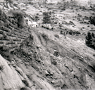 Brick retaining wall along East Rim road during repairs. ; ZION Museum and Archives Image 002.05.01-13of19 ; ZION 15933