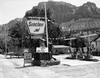 Roadside signs in Springdale. Utah Parks Company sign for Standard Stations, Inc. service station. 'Clean restrooms just inside Zion gate.' ; ZION Museum and Archives Image ZION 9426 ; ZION 9426