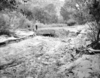 Flood damage - footbridge at mouth of Birch Creek. ; ZION Museum and Archives Image ZION 8620 ; ZION 15933