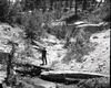 Illegally constructed water reservoir on government property in Hop Valley. Park service vehicle and James Felton in distance. ; ZION Museum and Archives Image 101_01_013 ; ZION 8279