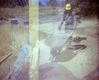 Workers laying roofing slabs during the headquarters/visitor center roofing project. ; ZION Museum and Archives Image 004.01.06-19of22 ; ZION 15933