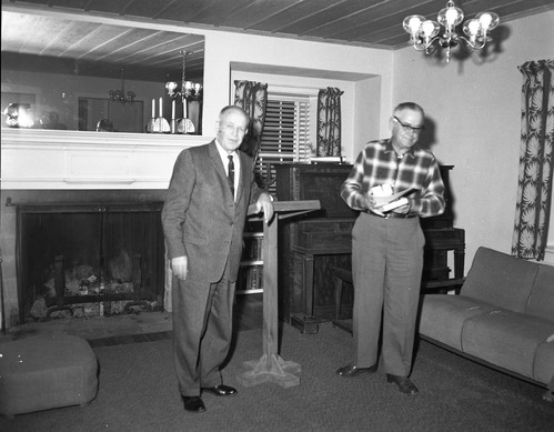 Retirement party for Arden Schieffer, Superintendent Frank R. Oberhansley presents award for meritorious service. ; ZION Museum and Archives Image ZION 9738 ; ZION 9738