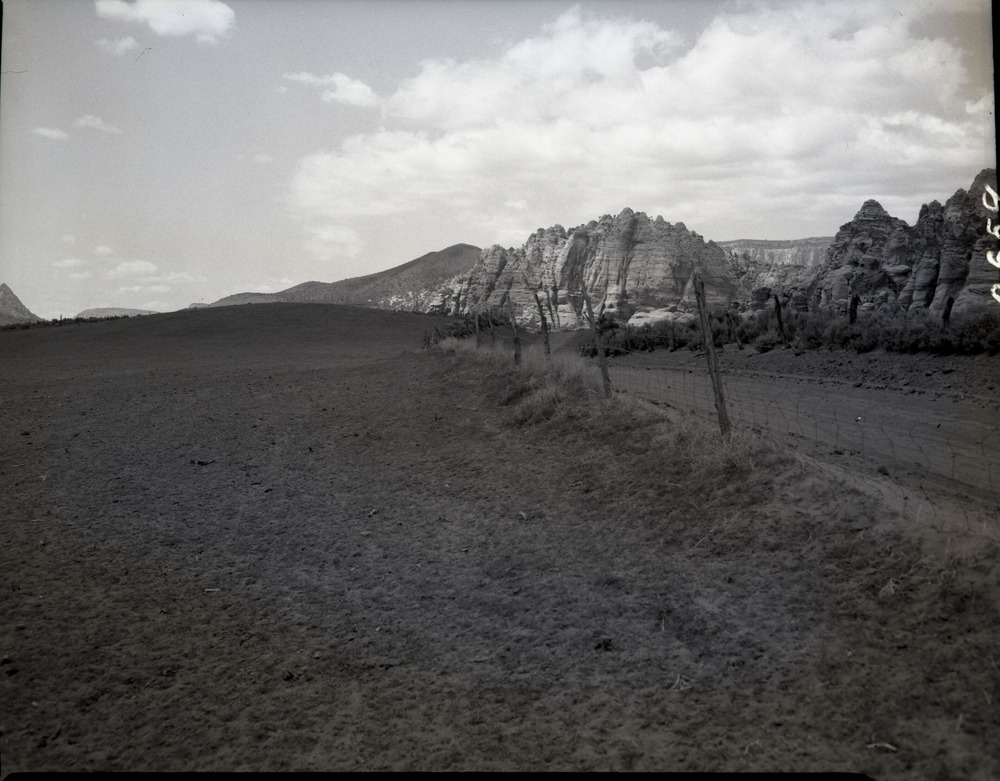 Improper land use with fence on north line of southwest quarter. ; ZION Museum and Archives Image 101.01.006 ; ZION 8272