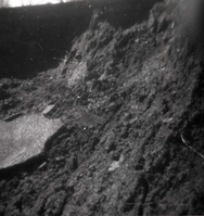 BW photos of rock slides in Kolob Canyons - 110mm. Trackhoe clearing debris. ; ZION Museum and Archives Image 107_06_21031 ; ZION 15933