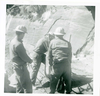 Workers operating construction equipment during the West Rim trail half tunnel maintenance/stabilization. ; ZION Museum and Archives Image 008.01.01-24of25 ; ZION 15933