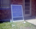 Sign reading '# of days without a lost time accident work safe today' outside of headquarters. ; ZION Museum and Archives Image 004.01.05-146of147 ; ZION 15933
