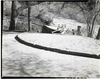 Two rangers viewing the damage on the trail and rock work on the Weeping Rock Trail. ; ZION Museum and Archives Image 008_07_006 ; ZION 13759