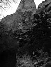 Taylor Creek with massive Navajo sandstone wall above drainage. ; ZION Museum and Archives Image 7185 ; ZION 7185