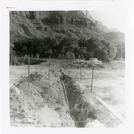 Pipe in ditch during the Watchman housing utility project. ; ZION Museum and Archives Image 006.04.13-7of17 ; ZION 15933