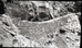 Narrows Trail construction, station 29-50, with view of dry wall, overhanging rock, and travertine limestone cut. ; ZION Museum and Archives Image 008_03_029 ; ZION 13607