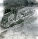 Side of the road with large rocks during construction along the scenic canyon drive near the Grotto. ; ZION Museum and Archives Image 002.03.05-29of37 ; ZION 15933