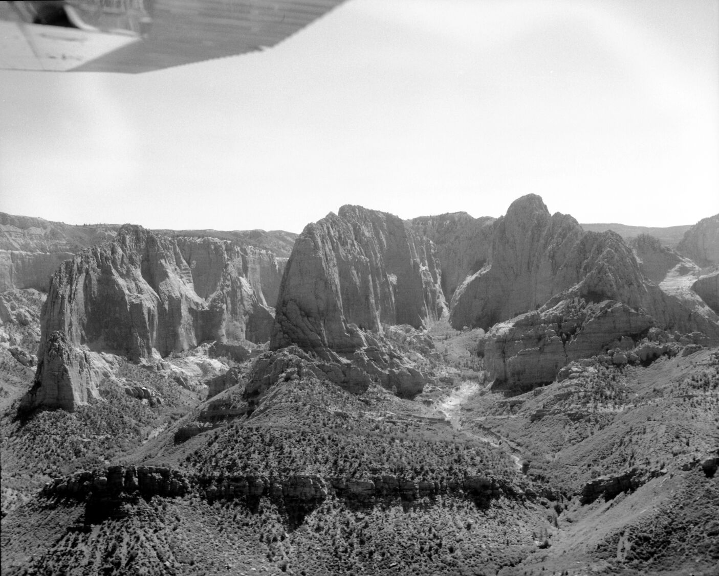 An aerial view of Kolob at the south end of finger canyons. ; ZION Museum and Archives Image 10037 ; ZION 10037