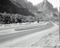 Park road at intersection of Oak Creek Road and main park road (State Route 9). ; ZION Museum and Archives Image 002_10004 ; ZION 7510