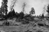 Logging operation on east rim of Zion Canyon. View of Marian Stout with team of horses. ; ZION Museum and Archives Image ZION 12419 ; ZION 12419