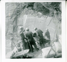 Man worker during the West Rim trail half tunnel maintenance/stabilization. ; ZION Museum and Archives Image 008.01.01-4of25 ; ZION 15933