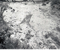 Rubble pile at base of canyon wall after rock slide. Birch Creek. ; ZION Museum and Archives Image 107_06_27004 ; ZION 15933