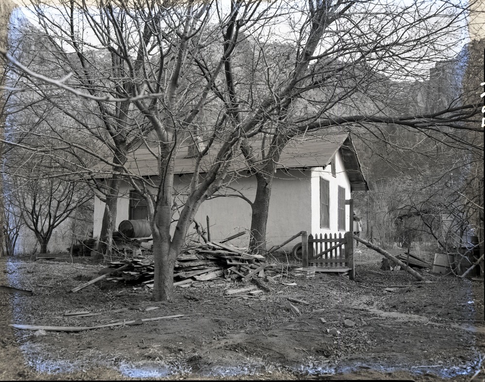 Samuel Heber and Mildred C. Crawford property, east of Virgin River, south of park boundary with house. ; ZION Museum and Archives Image 103_01_038 ; ZION 8229