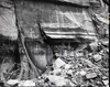 Construction of ladder used to access the water supply source (spring on wall) for the comfort station at the Temple of Sinawava. ; ZION Museum and Archives Image 006_04_143 ; ZION 8017