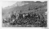 "B&W PHOTOGRAPH OF CCC BOYS NEAR NP1 CAMP IN ZION. APPROX 150 INDIVIDUALS IN PHOTOGRAPH. CUT FROM PHOTO ALBUM, FADED AND DISCOLORED.