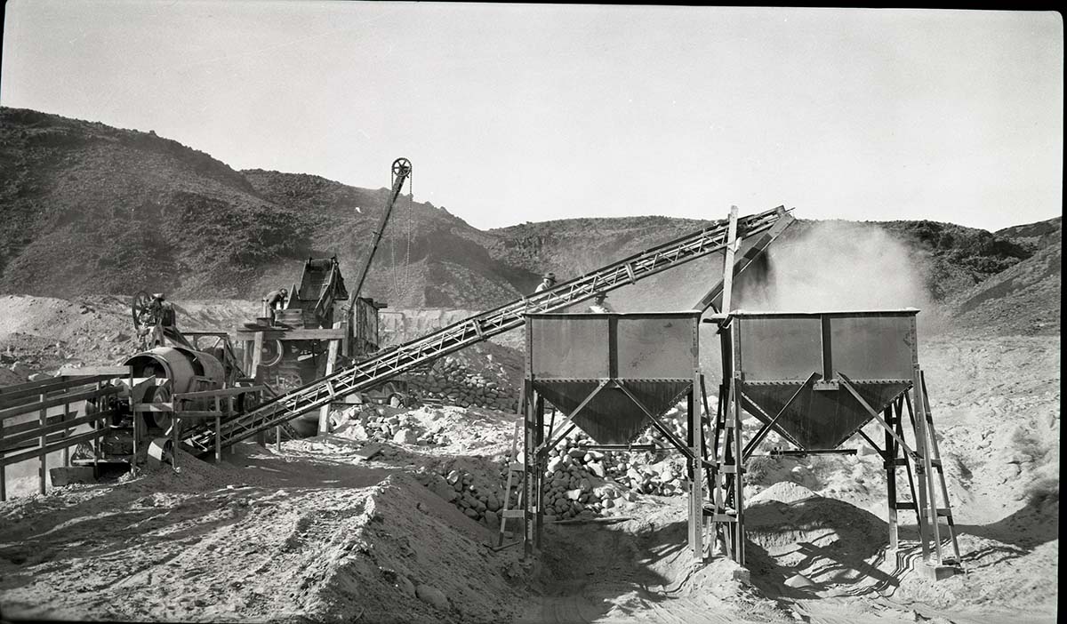 Gravel crushing operations at pit below Rockville. ; ZION Museum and Archives Image 006_02_004 ; ZION 7383