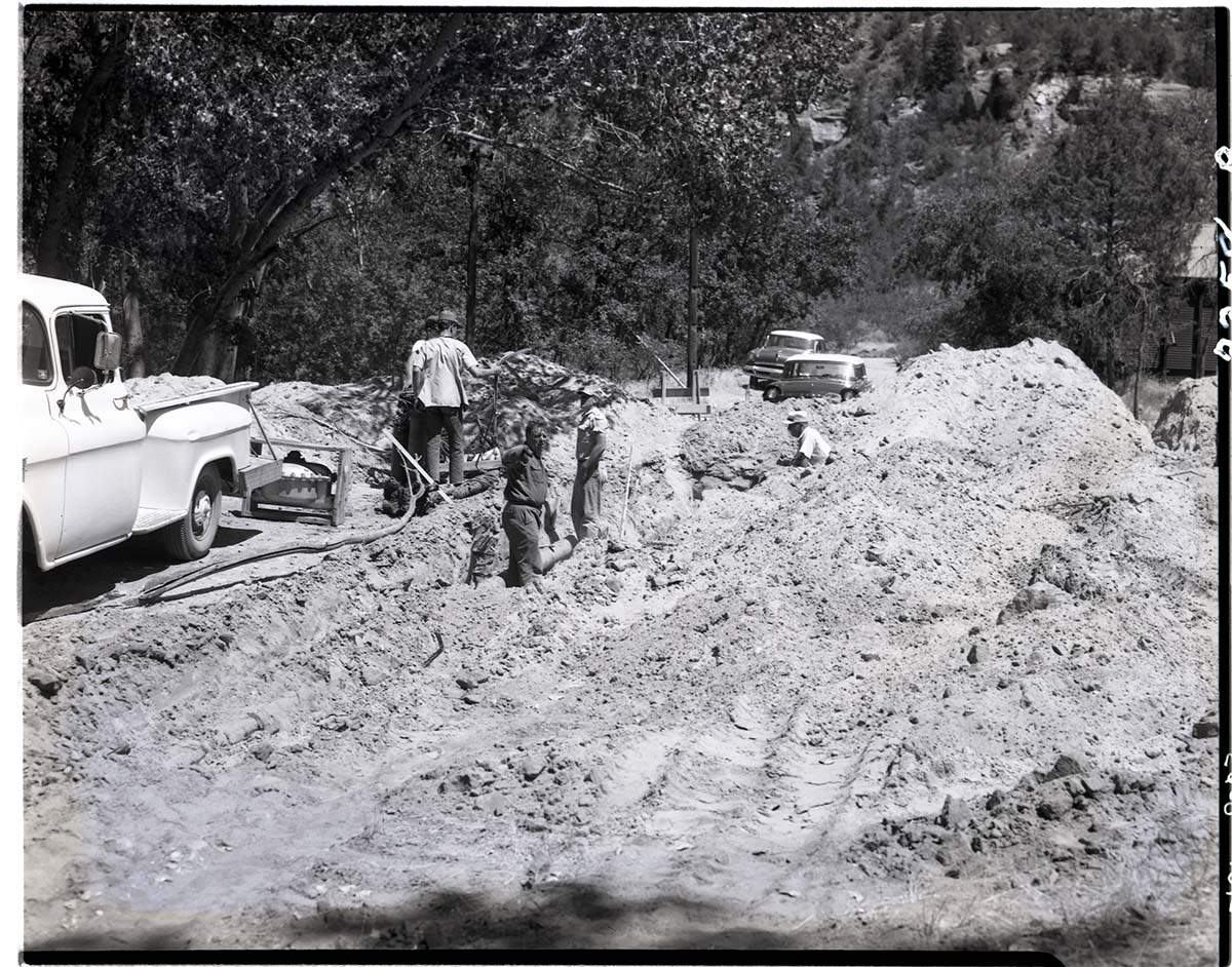 Oak Creek sewage system; replacing old sewer pipe at residential area. ; ZION Museum and Archives Image 006_04_123 ; ZION 8038