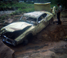Color photos of park personnel removing a car from the flood waters of the 1975 flood. ; ZION Museum and Archives Image 107_07_05007 ; ZION 15933