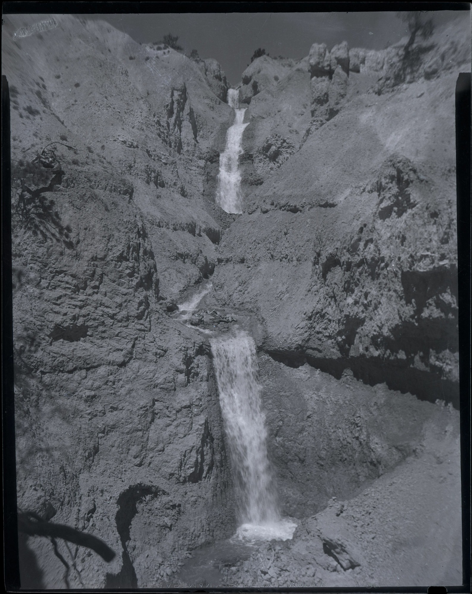 Nitrate negative of flash flood from below the rim in BRCA. ; BRCA Museum and Archives Image BRCA8875_001_510 ; BRCA 8875