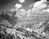 West Temple from the switchback on the Zion-Mt. Carmel Highway below the tunnel. Junipers in foreground. ; ZION Museum and Archives Image 13277 ; ZION 13277