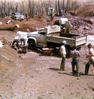 Color photo of the Virgin River channel stabilization rip-rap and construction of the spillway near Birch Creek. ; ZION Museum and Archives Image 105_02_08008 ; ZION 15933