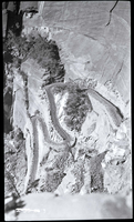 Damage done by storm of July 25, 1954 to West Rim Trail. Looking down on trail just below Walter's Wiggles. ; ZION Museum and Archives Image 008_01_020 ; ZION 10329
