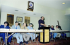 Color Photos of John Lancaster's farewell party at Elks Club in St. George, Utah. Speakers at roast in front of room: Pipe Spring National Monument Superintendent, TWA Steve Tedder, Chief of Maintenance, Chief Naturalist, John Lancaster, Crazy D, Administr