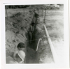 Pipe in ditch during the Watchman housing utility project. ; ZION Museum and Archives Image 006.04.13-7of17 ; ZION 15933