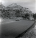 Construction trucks driving on road during east side road repair and turn out construction. ; ZION Museum and Archives Image 002.13.01-47of53 ; ZION 15933