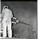 Worker using jack and drill in large tunnel. ; ZION Museum and Archives Image 002_02026 ; ZION 10188