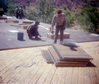 Workers laying roofing slabs during the headquarters/visitor center roofing project. ; ZION Museum and Archives Image 004.01.06-19of22 ; ZION 15933