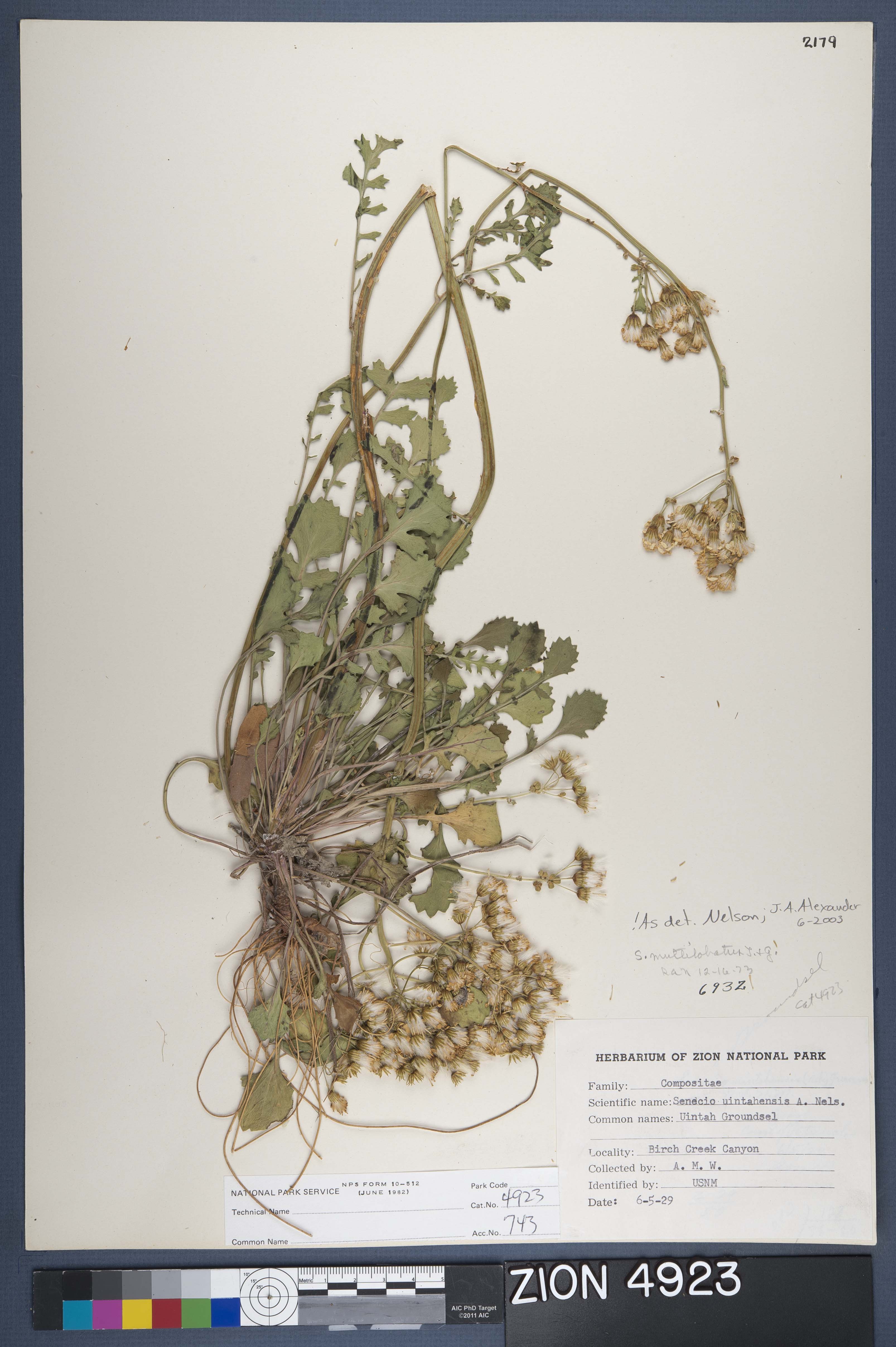 Senecio multilobatus, Lobeleaf senecio, Uinta groundsel. Collected by Angus M. Woodbury, 06-05-1929. Catalogued by Margaret Malm, 1988.