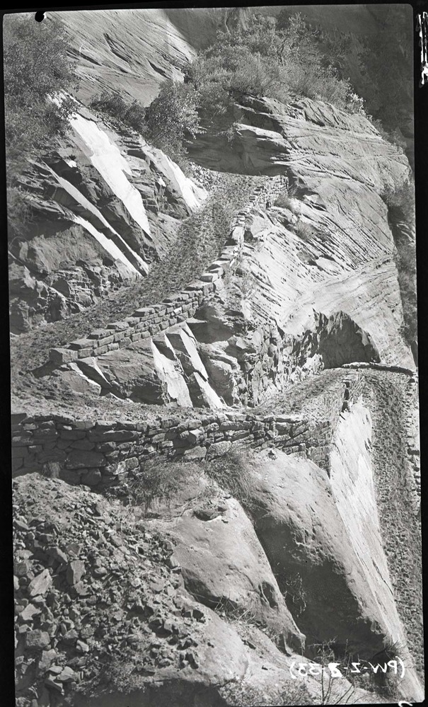 West Rim Trail, heavy wall work on short switchbacks. ; ZION Museum and Archives Image 008_01_025 ; ZION 13666