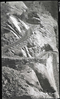 Damage done by storm of July 25, 1954 to West Rim Trail. Looking down on trail just below Walter's Wiggles. ; ZION Museum and Archives Image 008_01_020 ; ZION 10329