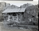Shed belonging to Samuel Heber and Mildred C. Crawford property, east of Virgin River, south of park boundary. ; ZION Museum and Archives Image 103_01_039 ; ZION 8358